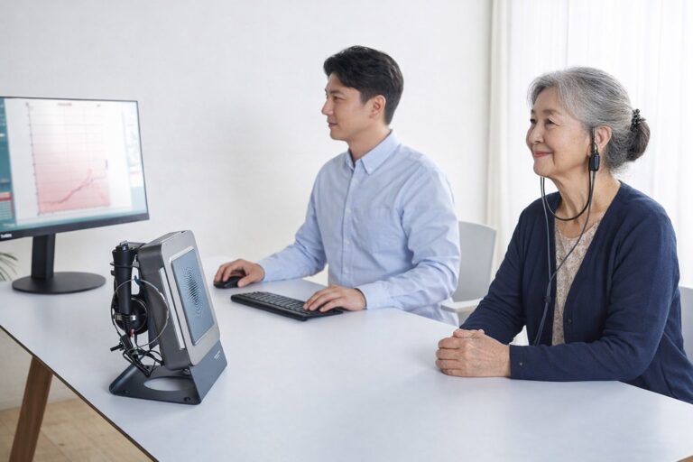 정확한 청력 상태를 파악하기 위해서는 정밀한 검사 장비가 필요합니다. 대학병원 수준의 청력 검사 장비가 있어야 개인의 난청 유형을 정확하게 분석할 수 있습니다. 정확한 데이터가 있어야 보청기 선택과 소리 조절도 제대로 이루어집니다.
